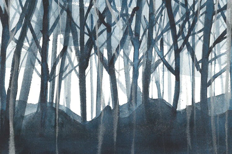 Light Blue Trees, Watercolor Landscape