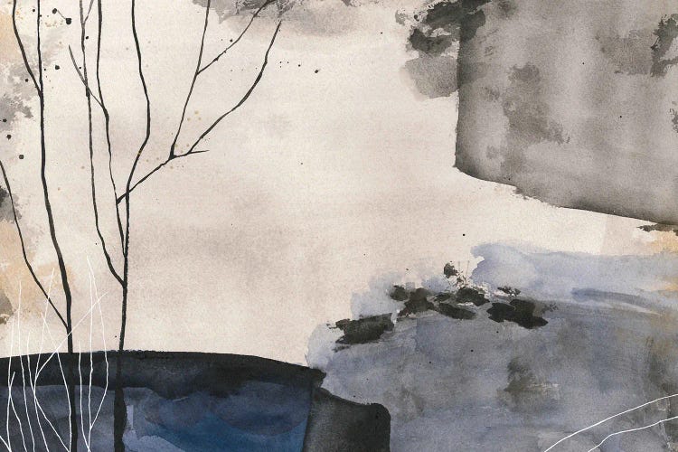 Blue And Brown Abstract Landscape, Watercolor