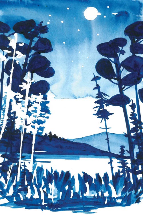 Watercolor Blue Indigo Reflection In The Lake
