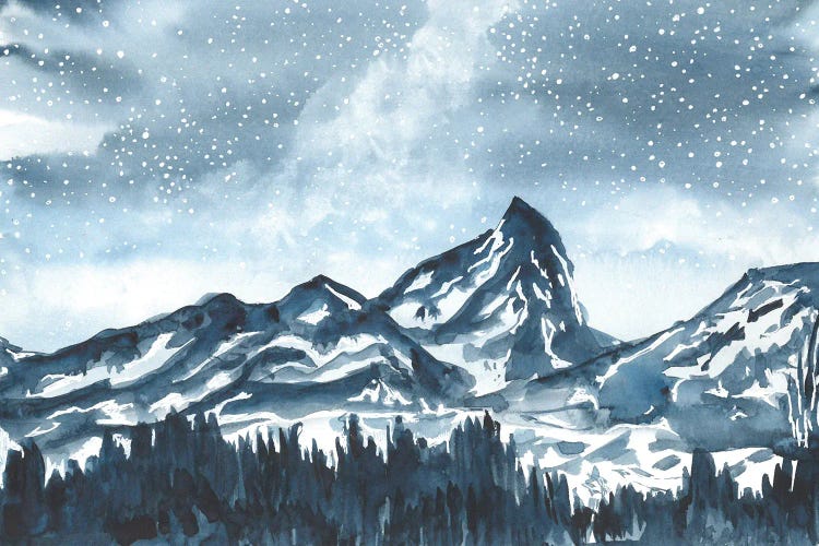 Snowy Winter Stream Watercolor