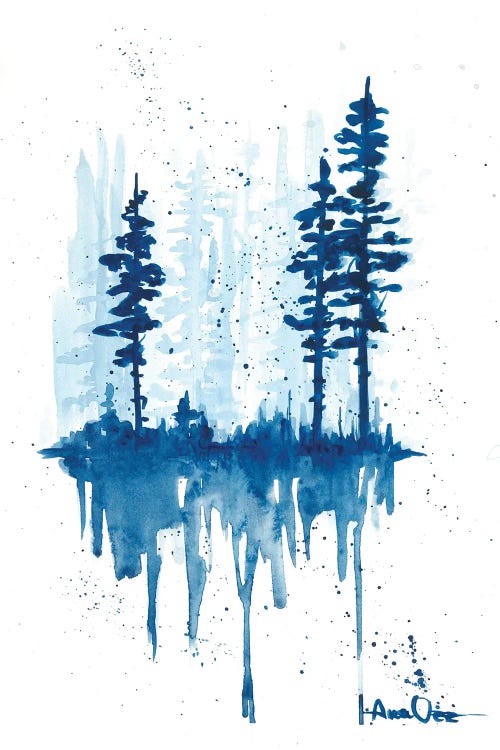 Watercolor Blue Trees