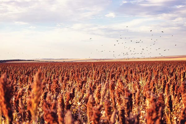 Autumn In South Dakota, Farm Field With Blackbirds