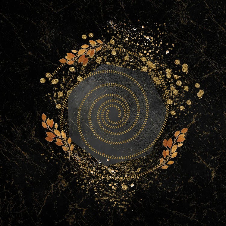 Glam Golden Spirals Geo Abstract III - With Leaf Accent
