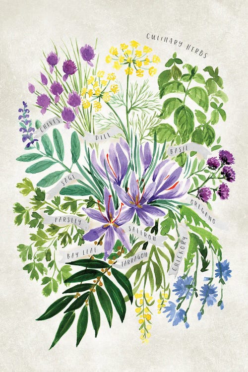 Vintage Watercolor Culinary Herbs Bouquet