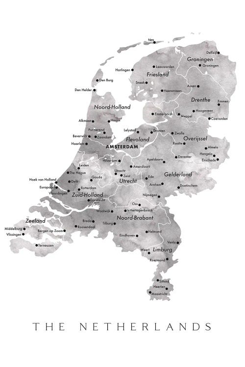 Watercolor Map Of The Netherlands With Cities