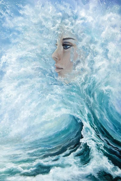 Woman Face From Waves In Ocean