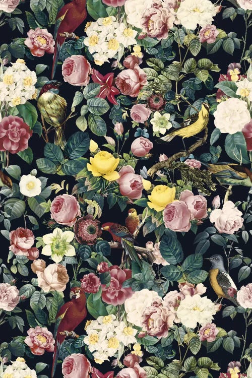 Floral And Birds Vintage Garden Night