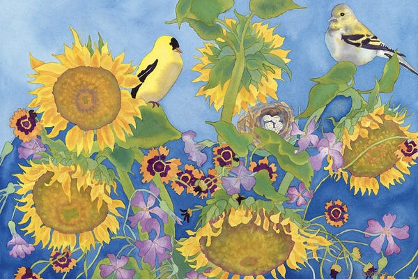 Goldfinches With Sunflowers
