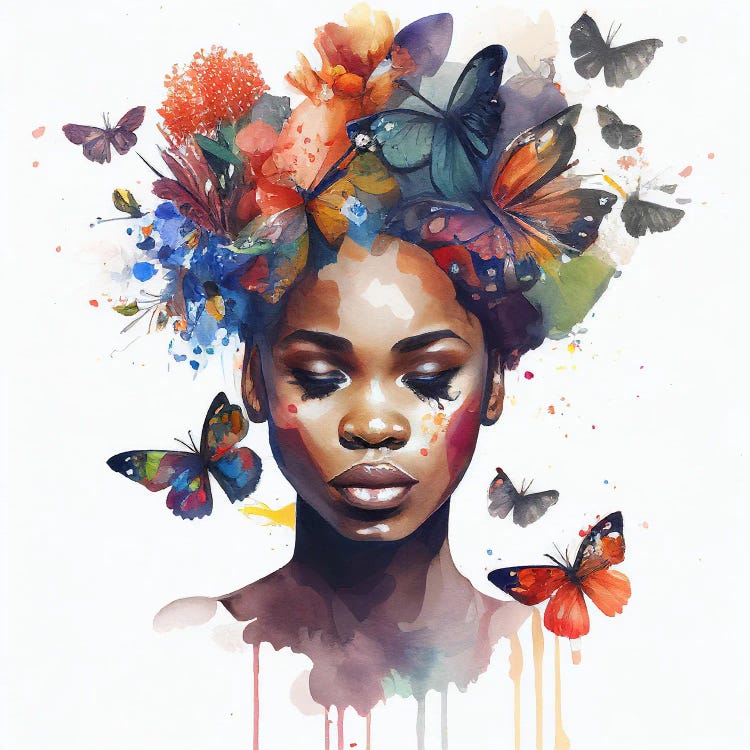 Watercolor Butterfly African Woman IV