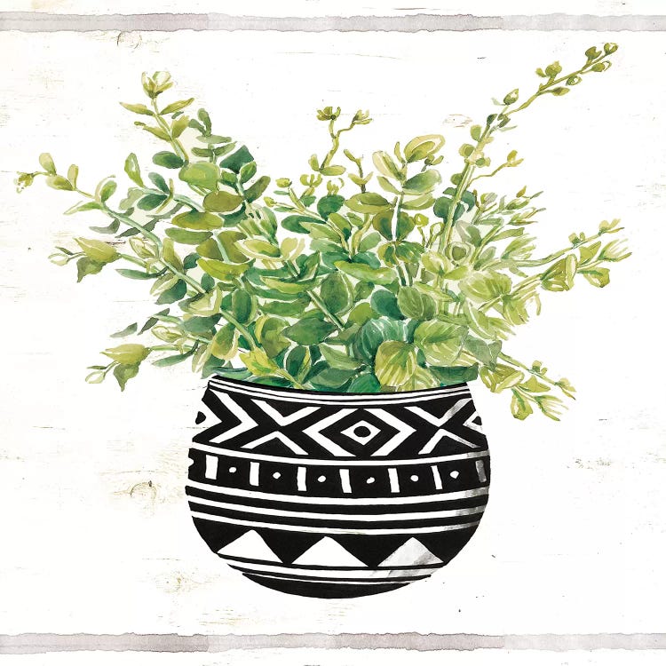 Mud Cloth Black and White Succulent II