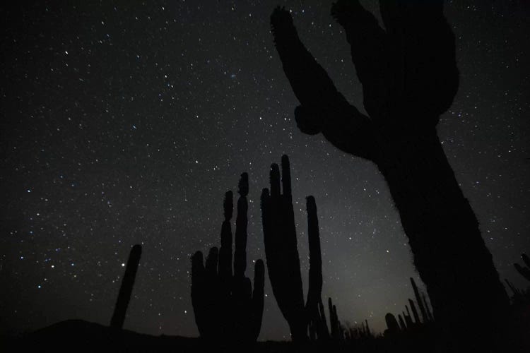 Cardon Cacti By Night With Stars, El Vizcaino Biosphere Reserve, Mexico