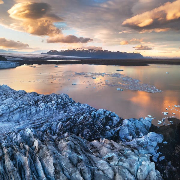 Golden Sunset Above A Glacier Lagoon In Iceland