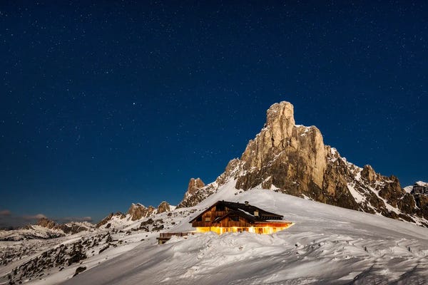 A Full Moon Winter Night In The Dolomites