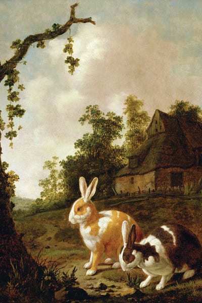 Wooded Landscape With Two Hares