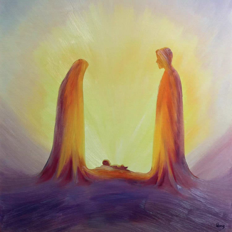 Mary and Joseph look with faith on the child Jesus at his Nativity, 1995 Elizabeth Wang