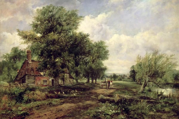 Wooded River Landscape With A Cottage And A Horse Drawn Cart