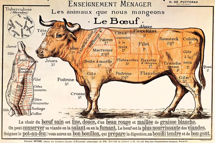Beef: diagram depicting the different cuts of meat