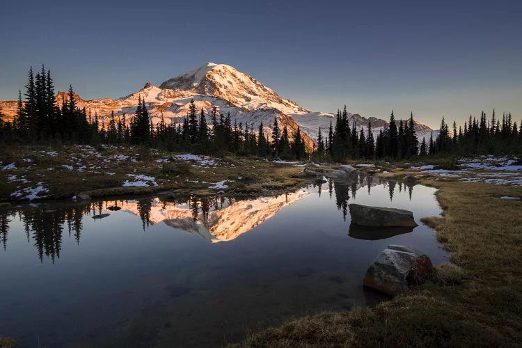 WA. Twilight shot of stars over Mt. Rainier, Little Tahoma and Burroughs MountainGary Luhm