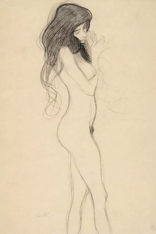 Standing Female Nude, Arms Crossed in the Back (Stehender Frauenakt, Mit Im Rucken Verschrankten Armen) 1906-1907