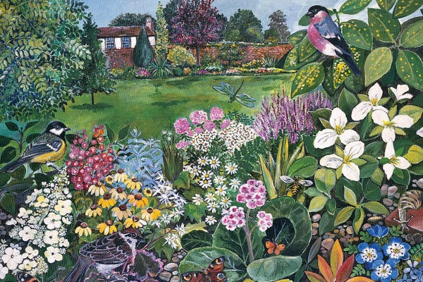 The Garden With Birds And Butterflies