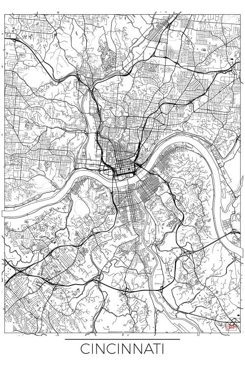 Cincinnati Minimal Urban Blueprint Map