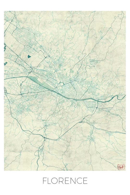 Florence Vintage Blue Watercolor Urban Blueprint Map