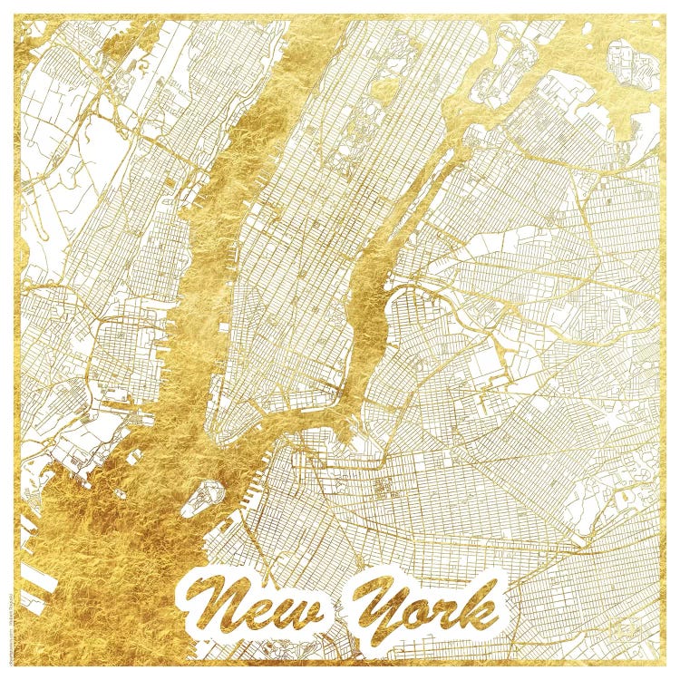 New York Gold Leaf Urban Blueprint Map