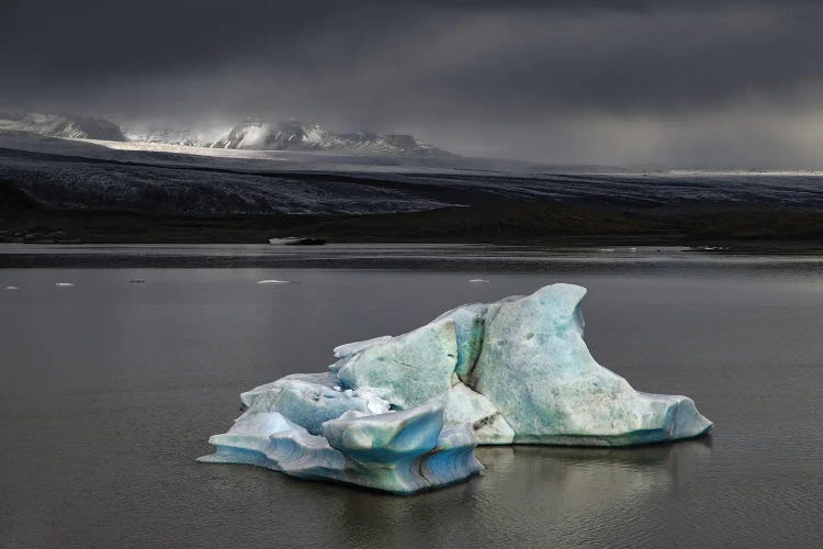 Iceberg Against Stormy Skies And Sunlight