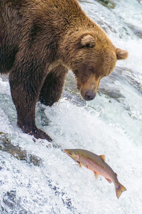 Alaska, Brooks Falls Grizzly Bear At The Top Of The Falls Watching A Fish JumpJanet Muir