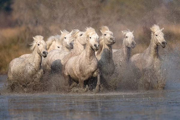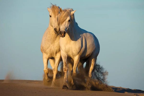 Pair Of Trotting Camargue Horses, Camargue, Provence-Alpes-Cote d'Azur, FranceJim Zuckerman