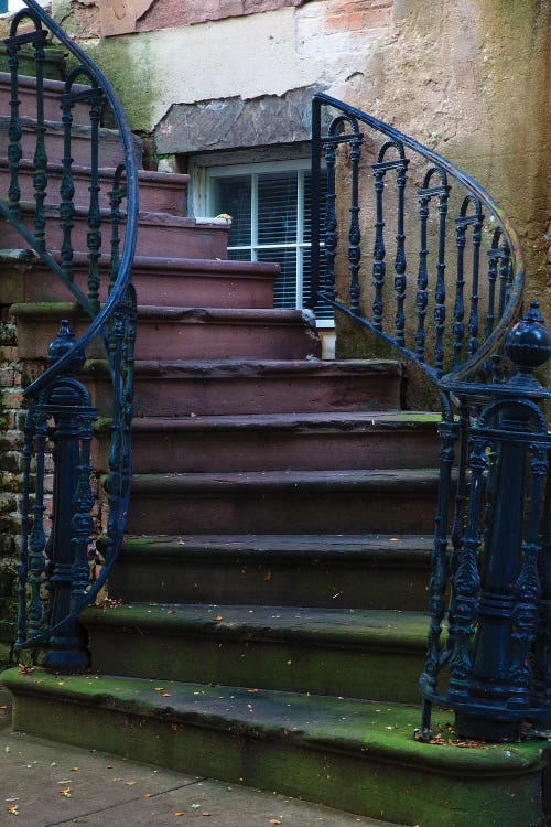 USA, Georgia, Savannah. Wrought iron railing at home in the Historic District.Joanne Wells