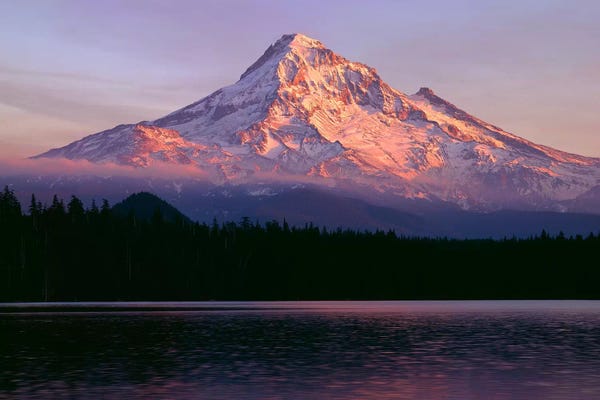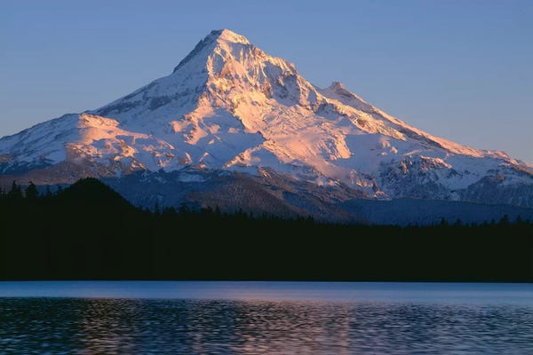 OR, Mount Hood NF. Sunset light reddens north side of Mount Hood with first snowJohn Barger