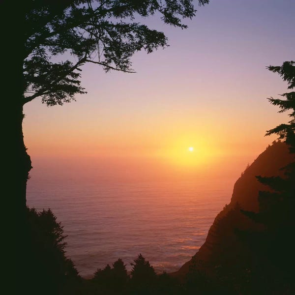 USA, Oregon, Oceanside Beach State Wayside. Sunset over Three Arch Rocks.John Barger