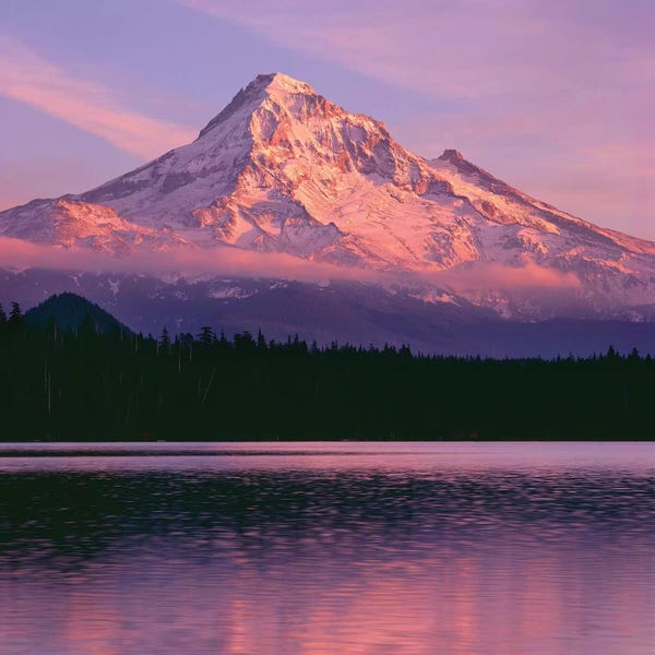 OR, Willamette NF. Sunset reddens the Three Sisters which reflect in Scott Lake.John Barger