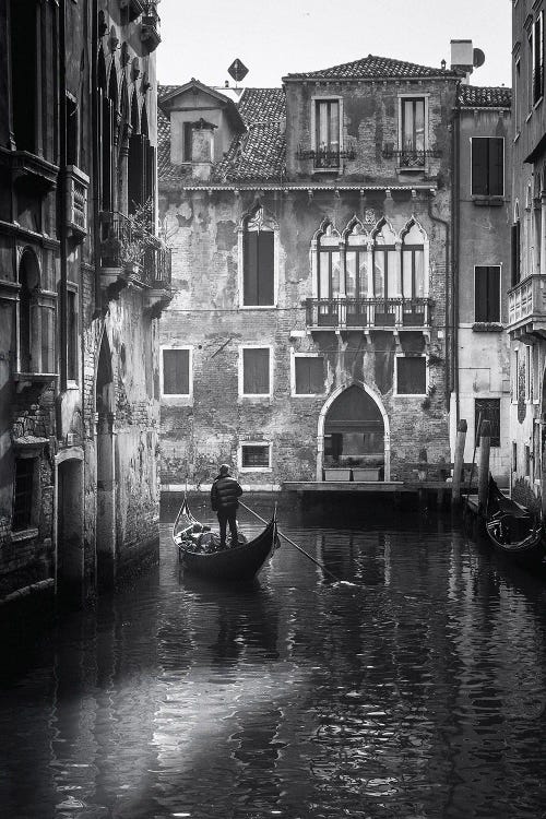 Venice Canal With Gondola Black And White