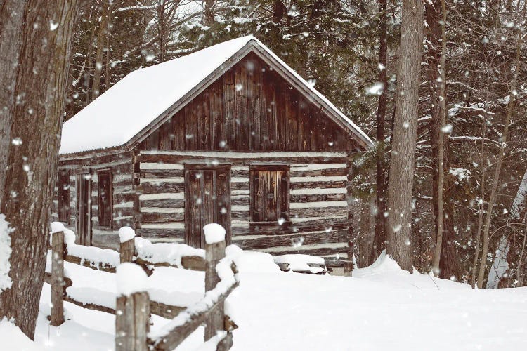 Forest Log Cabin In The Snow