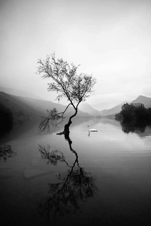 Lone Tree At Llyn Padarn In Wales Black And White