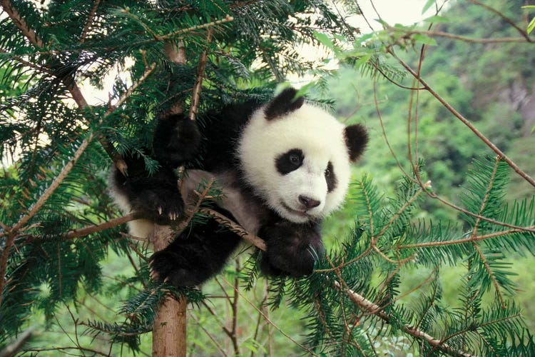 Giant Panda Cub Climbs A Tree, Wolong Valley, Sichuan Province, ChinaKeren Su