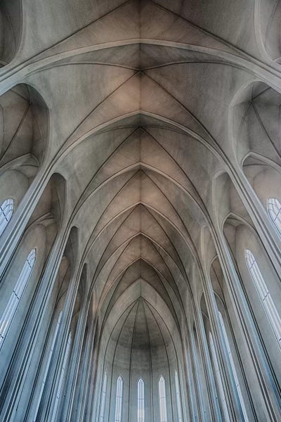 Iceland, Reykjavik, Ribbed Vaults In The Modern Cathedral Of Hallgrimskirkja.