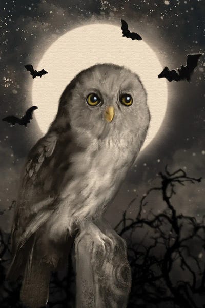 Halloween-Owl and Moon