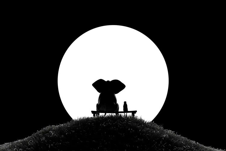 Elephant And Dog Are Sitting In A Fantasy Landscape And Looking At SunriseMike Kiev