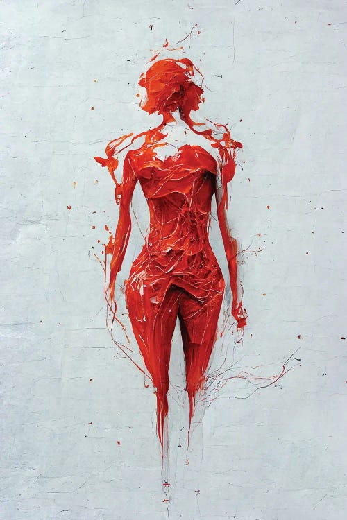 Woman Painted With Rough Red Paint