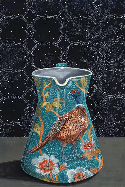 Turquoise Pitcher With Pheasant