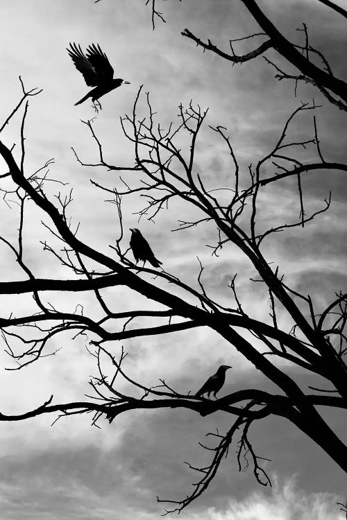 Seagulls Flying With Tree Silhouette Black And White PhotographyPage Turner