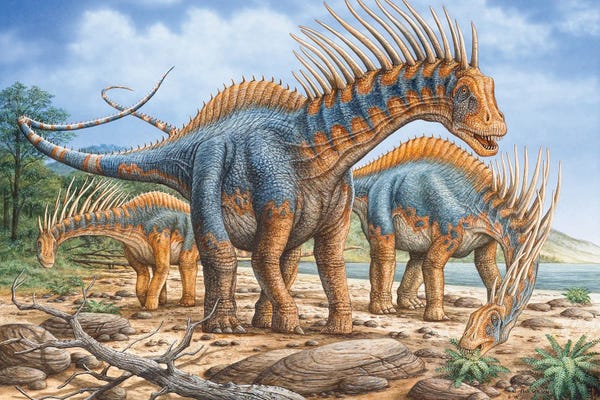 A Group Of Amargasaurus Dinosaurs Grazing On The Shoreline