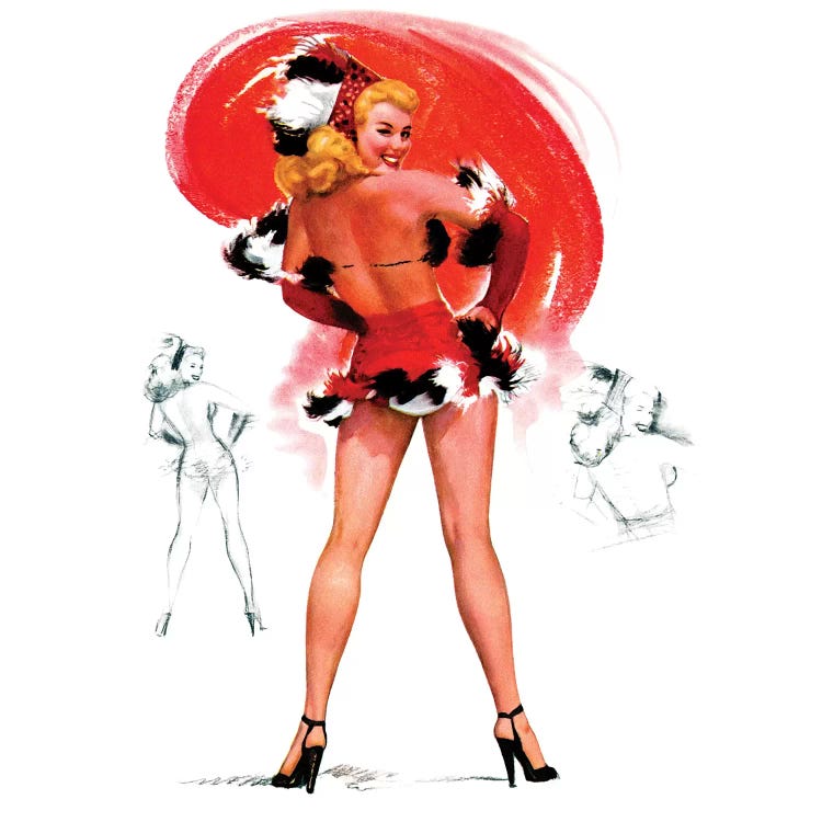 Disturbing Elements Retro Pin-Up Girl in Rain with Umbrella by Gil ElvgrenPiddix