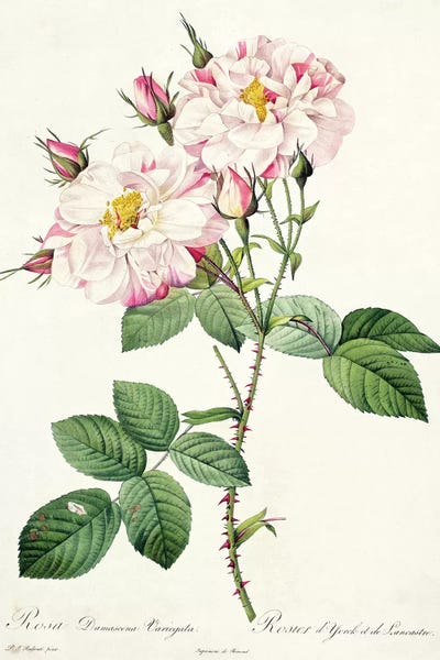 Rosa damascena variegata , engraved by Bessin, from 'Les Roses', 1817-24 Pierre-Joseph Redouté
