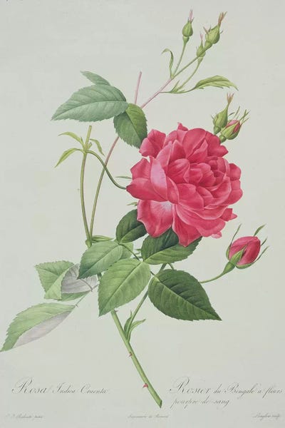 Rosa indica cruenta , engraved by Langlois, from 'Les Roses', 1817-24 Pierre-Joseph Redouté