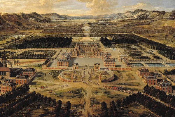 Perspective view of the Chateau, Gardens and Park of Versailles seen from the Avenue de Paris, 1668