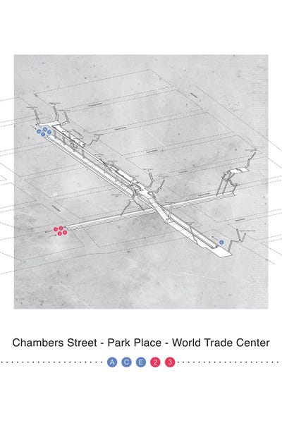 Chambers Street - Park Place - World Trade Center Station 3D Map PosterProject Subway NYC